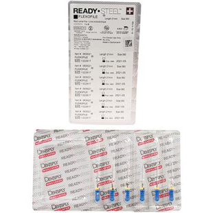 READY•STEEL Flexofile Files are intermediate-sized, shaping hand files designed with enhanced flexibility for effortless cleaning and shaping of even the most challenging canals during endodontic procedures.